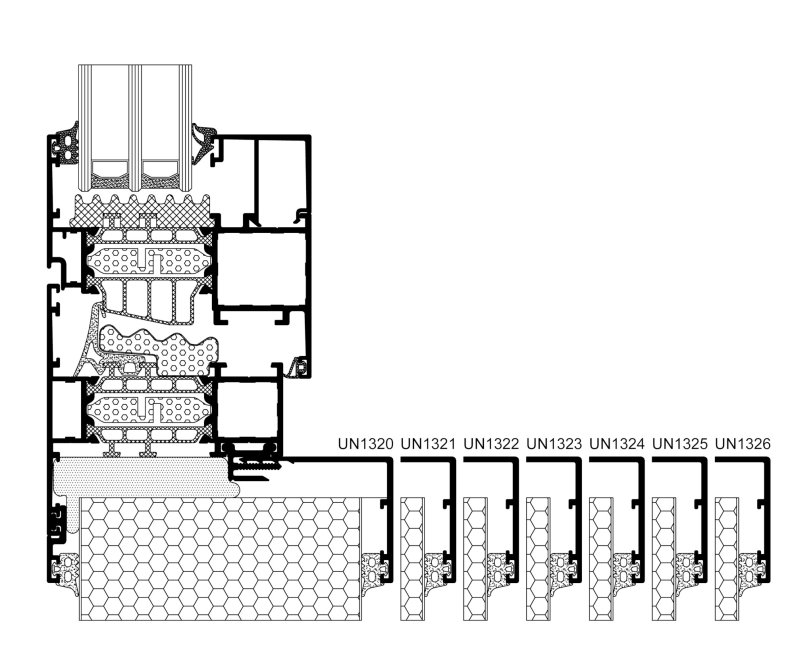 - systém pozostávajúci z hliníkových profilov, umožňujúci jednoduchú montáž rôznych typov okien a dverí zo systémov Aliplast (Genesis 75, Superial, Imperial, Star) v objektoch vyrobených z rôznych typov sendvičových panelov s hrúbkou 60 až 250 mm