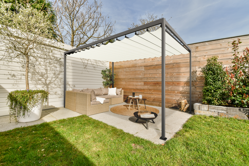 • Konštrukcia pergoly NUUN FABRIC je vyrobená z extrudovaných hliníkových profilov a oceľových spojov. Vďaka použitiu najkvalitnejších materiálov je pergola odolná voči nepriaznivým poveternostným podmienkam bez toho, aby stratila svoju estetiku počas nasledujúcich sezón používania. Hliník je ľahký, odolný voči korózii a ľahko udržiavateľný materiál, vďaka čomu sú hliníkové pergoly obľúbenou voľbou pre záhrady a terasy.