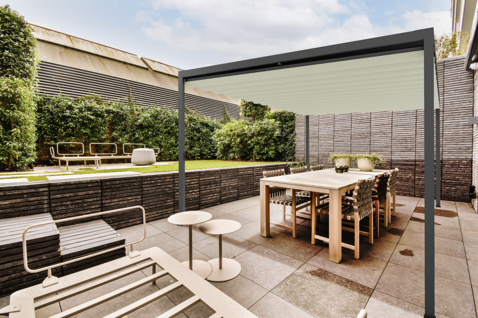 • Materiál použitý na strechu pergoly NUUN FABRIC neprepúšťa svetlo, čím chráni pred slnkom a nadmerným zahrievaním, je plne vodotesný a nepoškodzuje ho UV žiarenie.